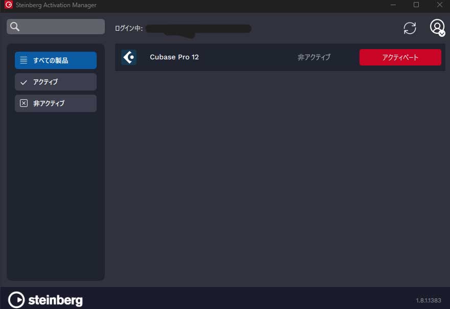 ※Steinberg Activation Managerという公式ソフトからも操作できるようです。おそらくマイページで全部片付くと思いますが、うまく行かない人は念の為ソフトを使用しての非アクティブ化を試して下さい。このような画面になっていたら非アクティブ化OKです。