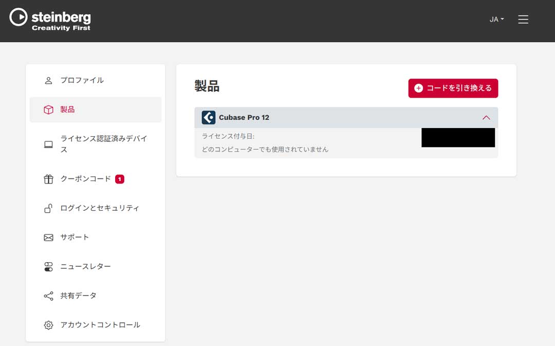 1.Steinbergマイページからコードを非アクティブにする