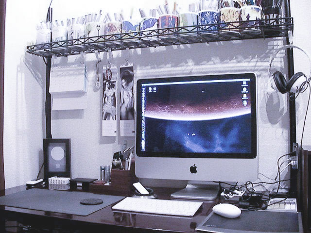 ルミナス・スチールラックの天板を木板にして、上部にはスタバご当地マグをペン立て代わりにコピックマーカーを並べていました。上に棚があるだけではちょっと中途半端。