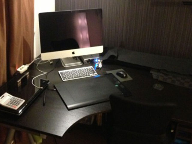 90cm✕2はなかなかの広さ。引き出し部分にキーボードやペンタブが置けて便利でした。下に本棚もついているし。