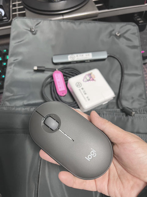 外出時用。平べったいのでポケットにすっと入る。家用にはM220CG。G703のゲーミング用使ってましたが、大きくて手に収まらないので売りました。