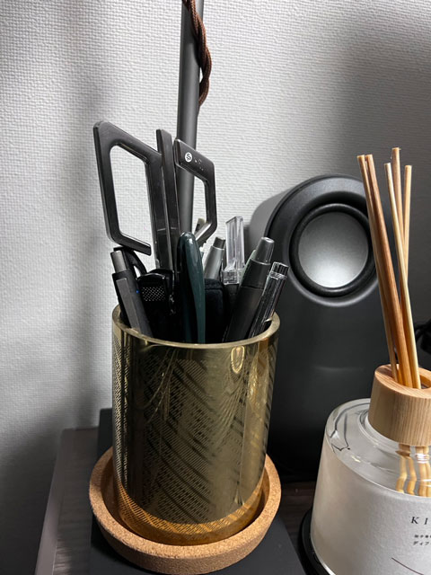 文具好きなら知っているcraft design technologyの高級ペン立てです。なぜ買ってしまったかは思い出せませんが、ハサミ、レザーペンケース、朱肉などこのメーカーで色々揃えてます。