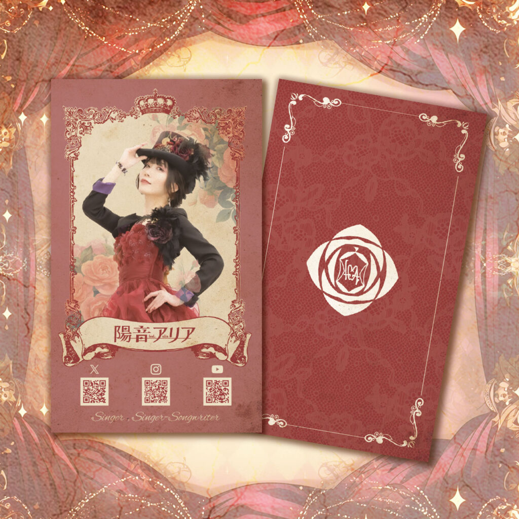 DesignWork名刺・スタンプカード制作 ゴシック陽音アリア 陽音アリア 名刺デザイン X Bluesky Facebook コピー 2025.10.07 Singer、Singer-Songwriterとして活動する朔樂座の姫こと「陽音アリア」の名刺をデザインさせていただきました!