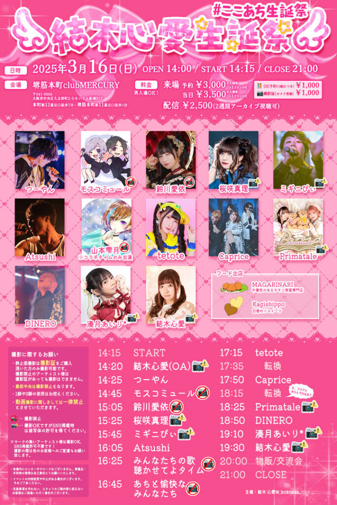出演:つーやん モスコミュール 鈴川愛依 桜咲真理 ミギニぴぃ Atsushi 山本雫月(コラボタイムのみ出演) tetote Caprice Primatale DINERO 湊月あいり* 結木心愛 フード出店:MAGARINARI Kagishippo