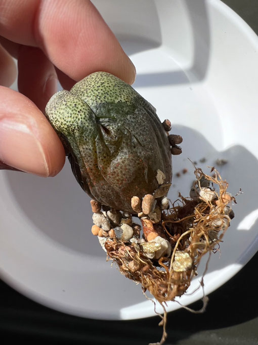 配送時の衝撃で土がひっくり返ってますが、根は地中に入ったままでした。