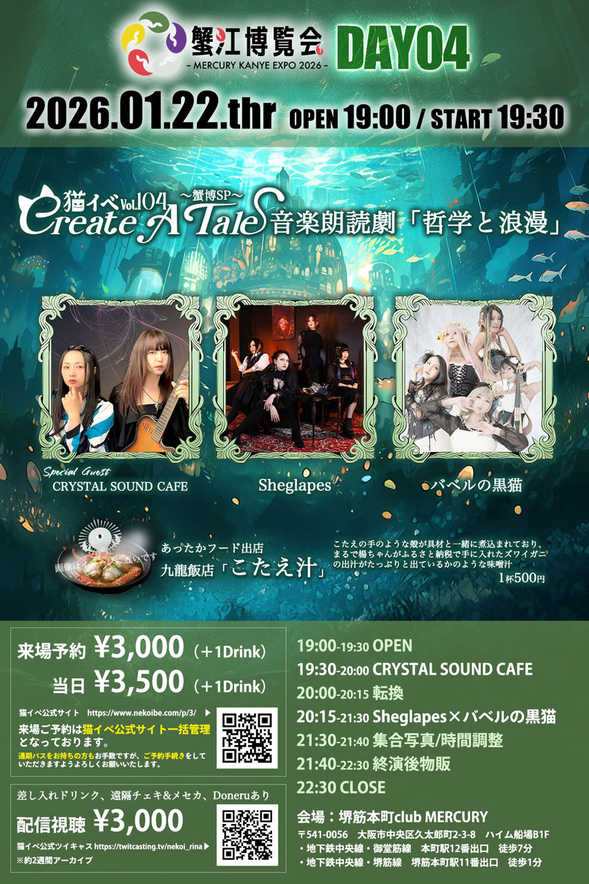 ■入場料:ご予約3,000円(別途+1ドリンク)/当日3,500円