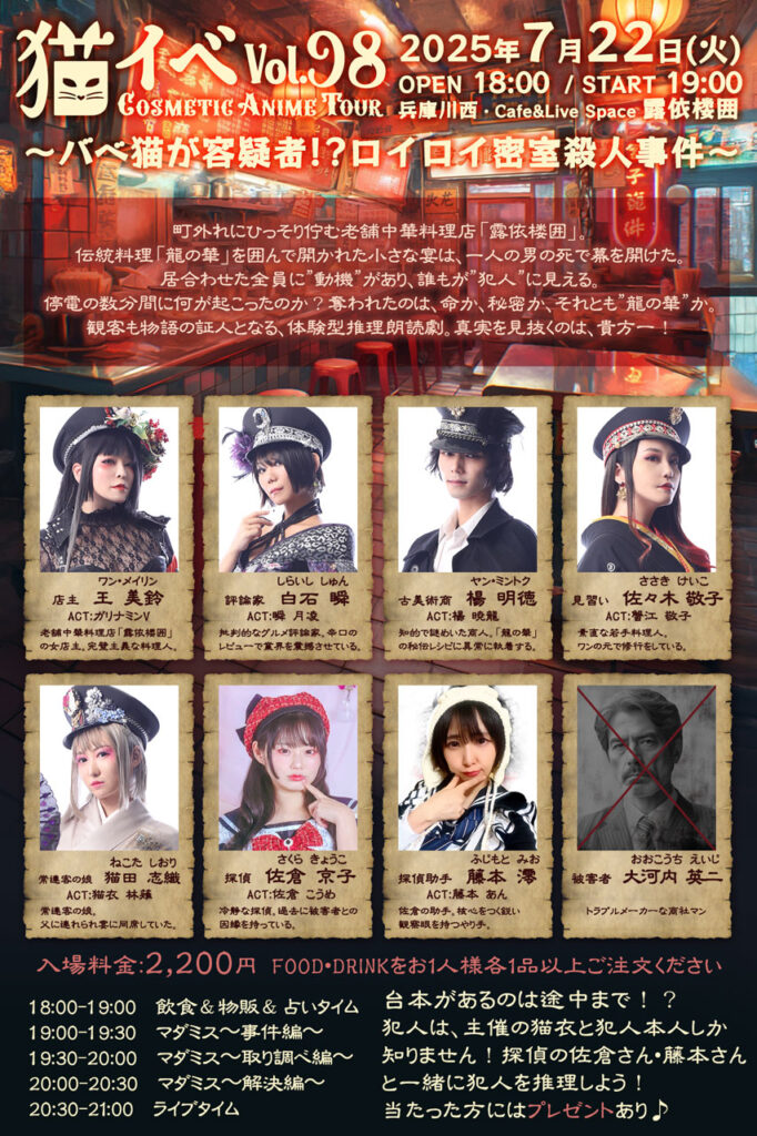 犯人は、主催の猫衣と犯人本人しか知りません!探偵の佐倉さん・藤本さん
