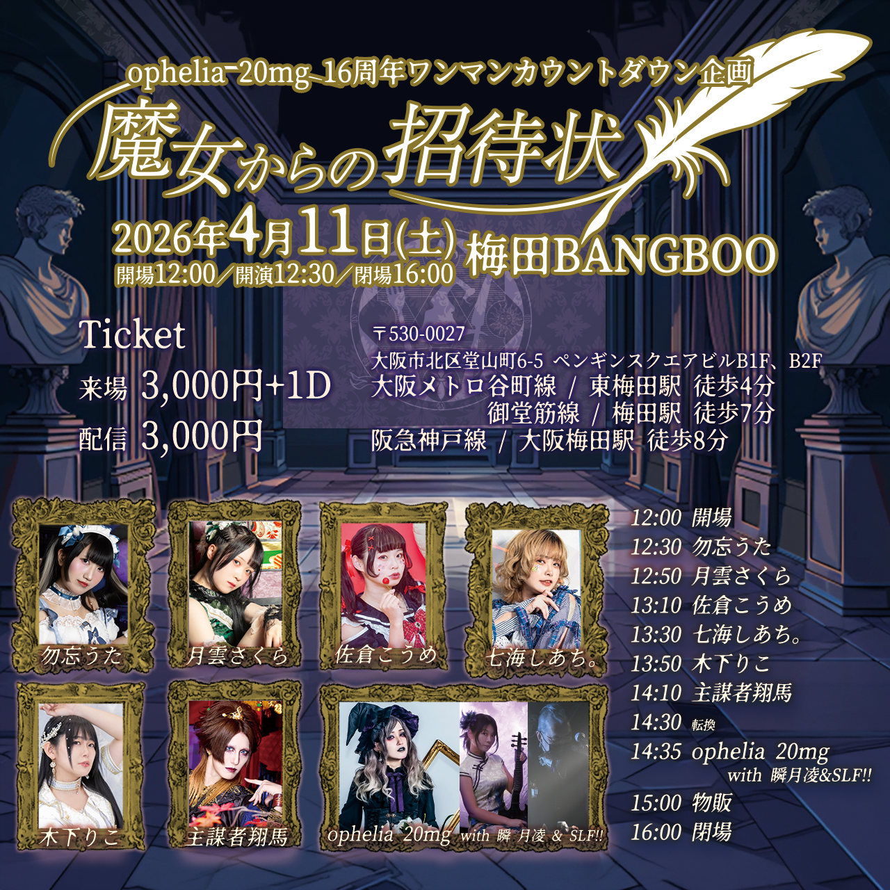 ophelia 20mg 16周年記念ワンマン 「魔女の展覧会」