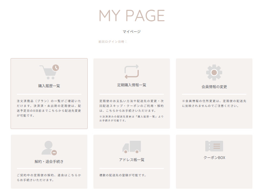 登録後はマイページから、解約・プラン変更・配送スキップなどが行えます。