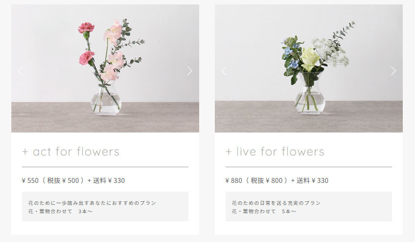 「気軽に切り花のある生活をしてみたいなぁ」というぼんやりとした欲求を、安価に満たせるサービスを検討した結果、今回は