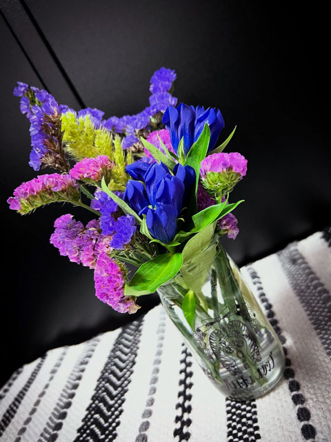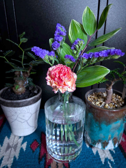 次の配送までに、スターチスが生き残っていたので新しいのといっしょに活けました。