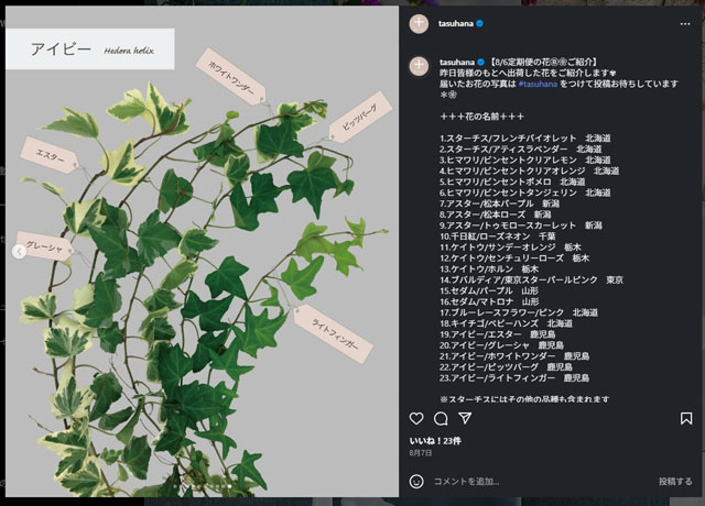 公式Instagramでは、画像付きでより分かりやすいお花紹介が投稿されています。