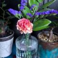 次の配送までに、スターチスが生き残っていたので新しいのといっしょに活けました。