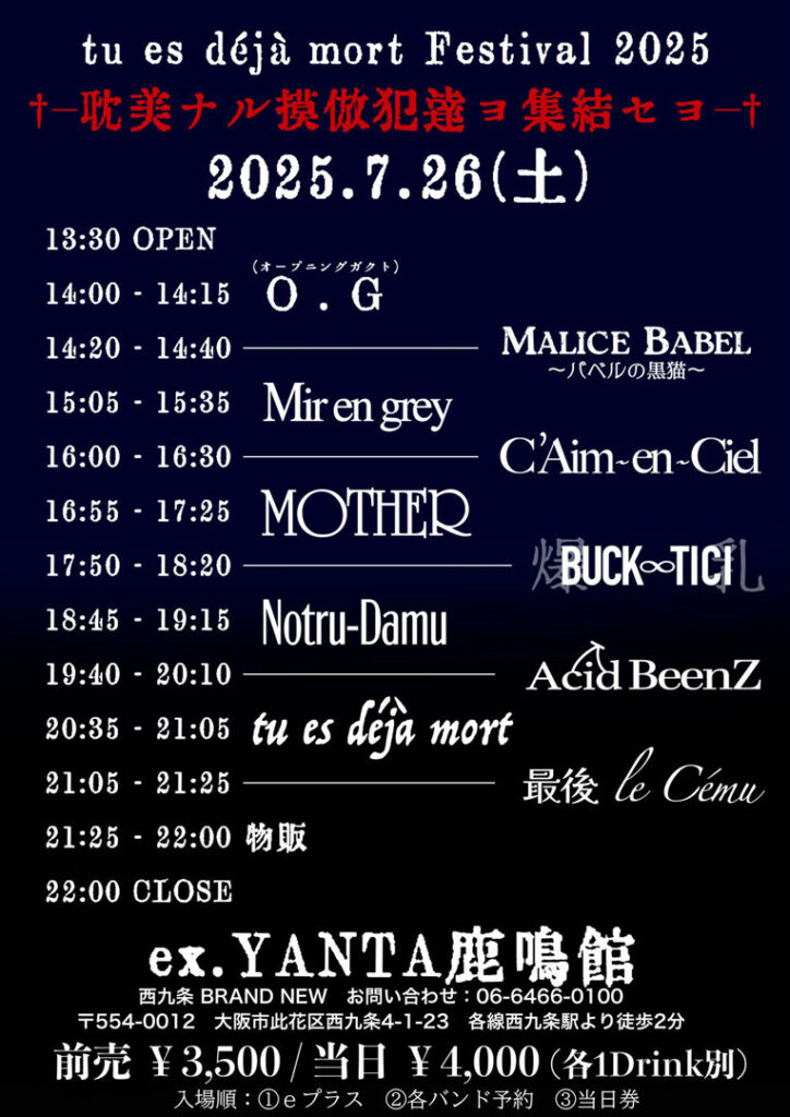 tu es déjà mort / MOTHER /Notru-Damu / BUCK∞TICI / Acid BeenZ / C’Aim〜en〜Ciel / Mir en grey / MALICE BABEL〜バベルの黒猫〜