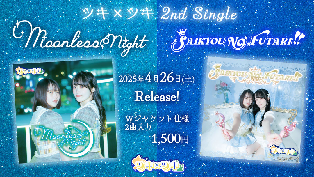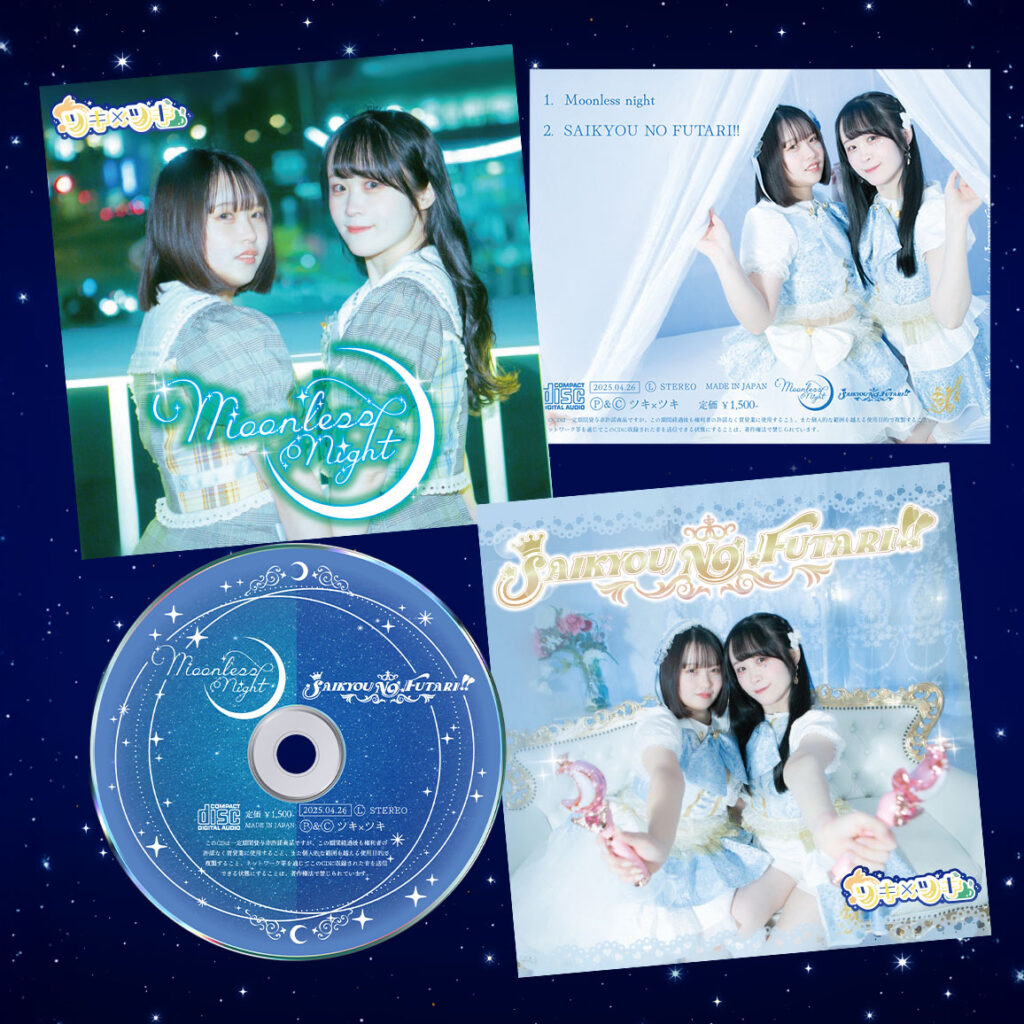 DesignWorkジャケット制作ロゴ制作 CDジャケットアイドルアクリルスタンドツキ×ツキ ツキ×ツキ 2nd Single 「Moonless night/SAIKYOU NO FUTARI!!」ロゴ・ジャケットデザイン X Bluesky Facebook コピー 2025.04.272025.09.05 楽曲ロゴ、CD入稿デザイン、アクスタデータを作らせていただきました!