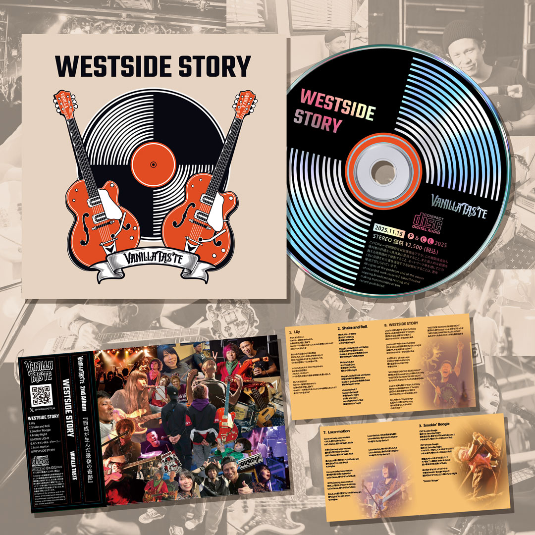 DesignIllustrationWorkその他ジャケット制作 CDジャケットVANILLA TASTEWESTSIDE STORY VANILLA TASTE「WESTSIDE STORY」ジャケットデザイン X Bluesky Facebook コピー 2025.10.02 VANILLA TASTEさんの2ndアルバム「WESTSIDE STORY」のジャケットイラスト・デザイン、入稿データ作成いたしました!